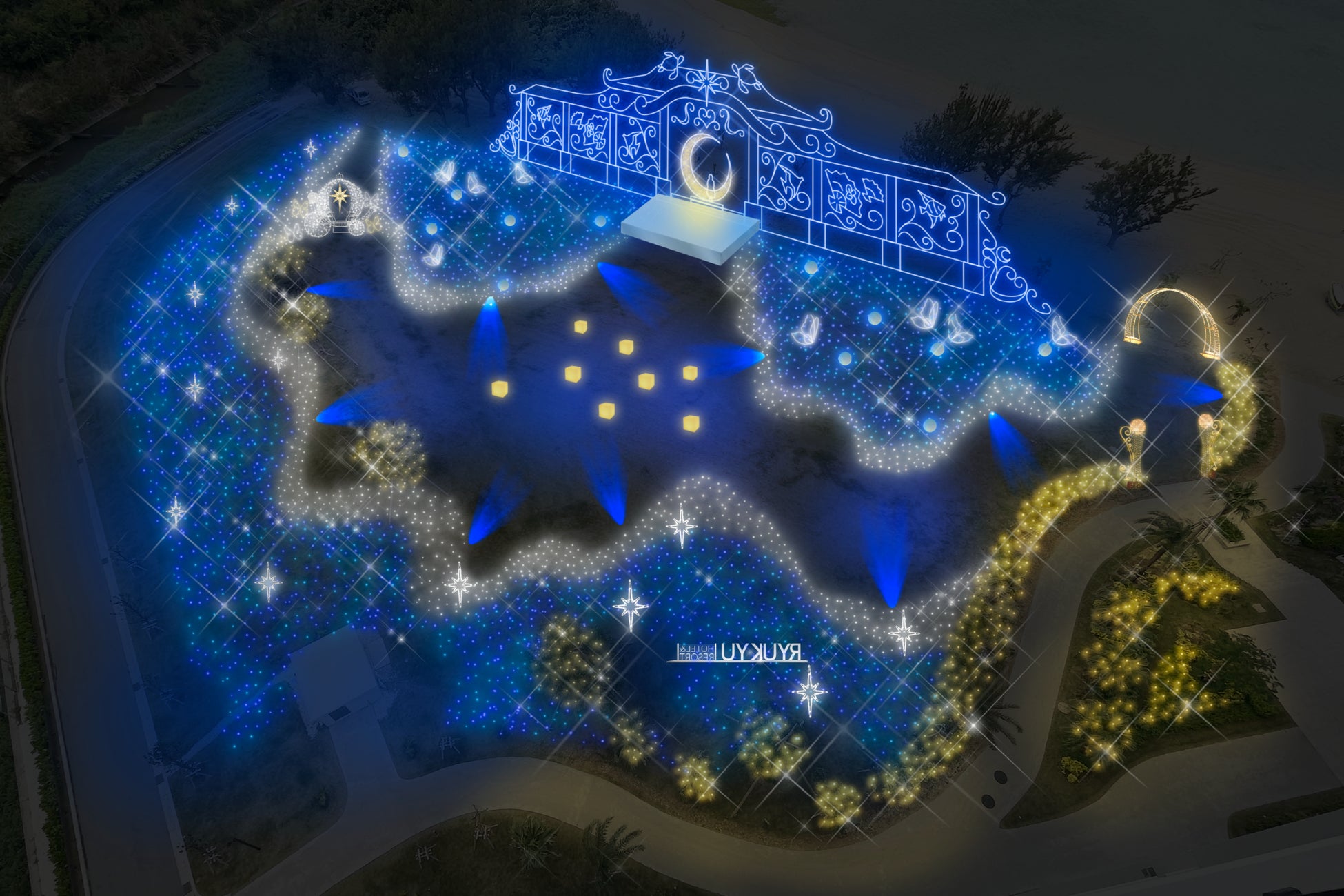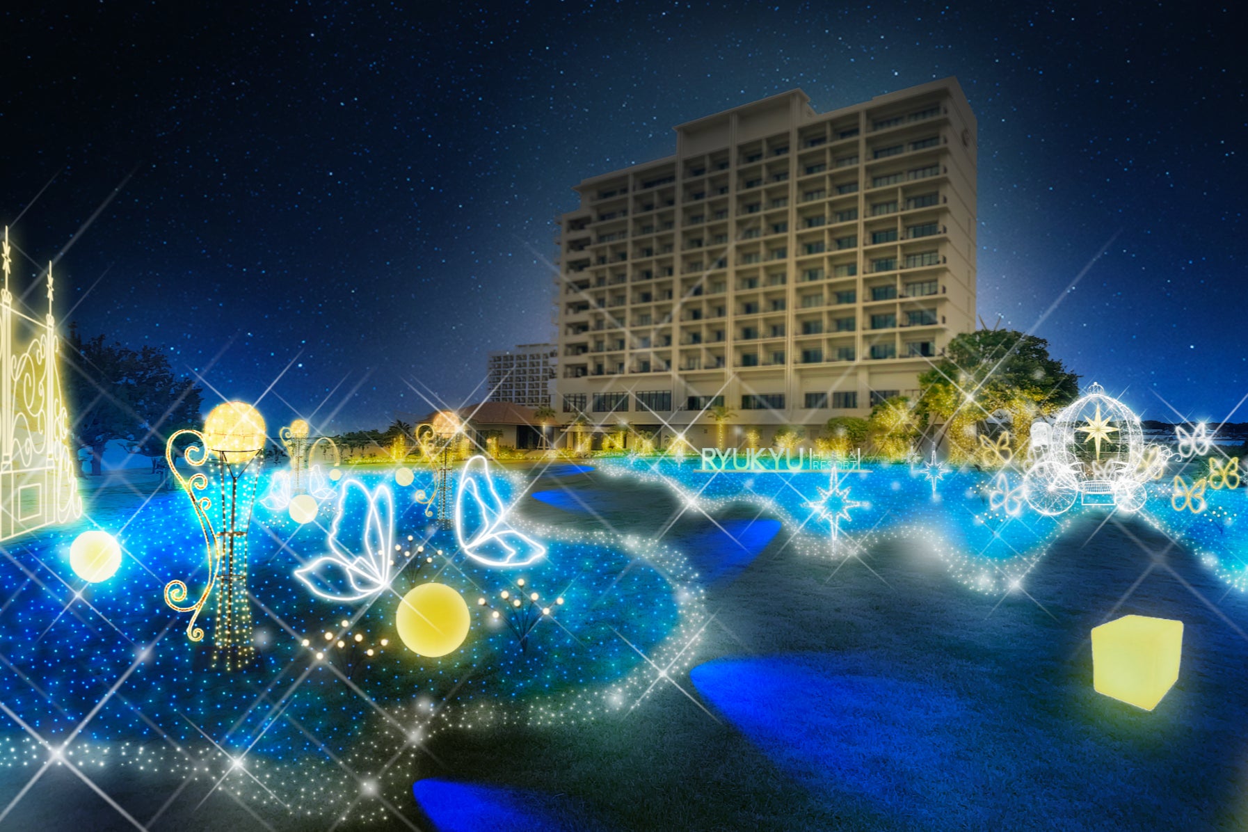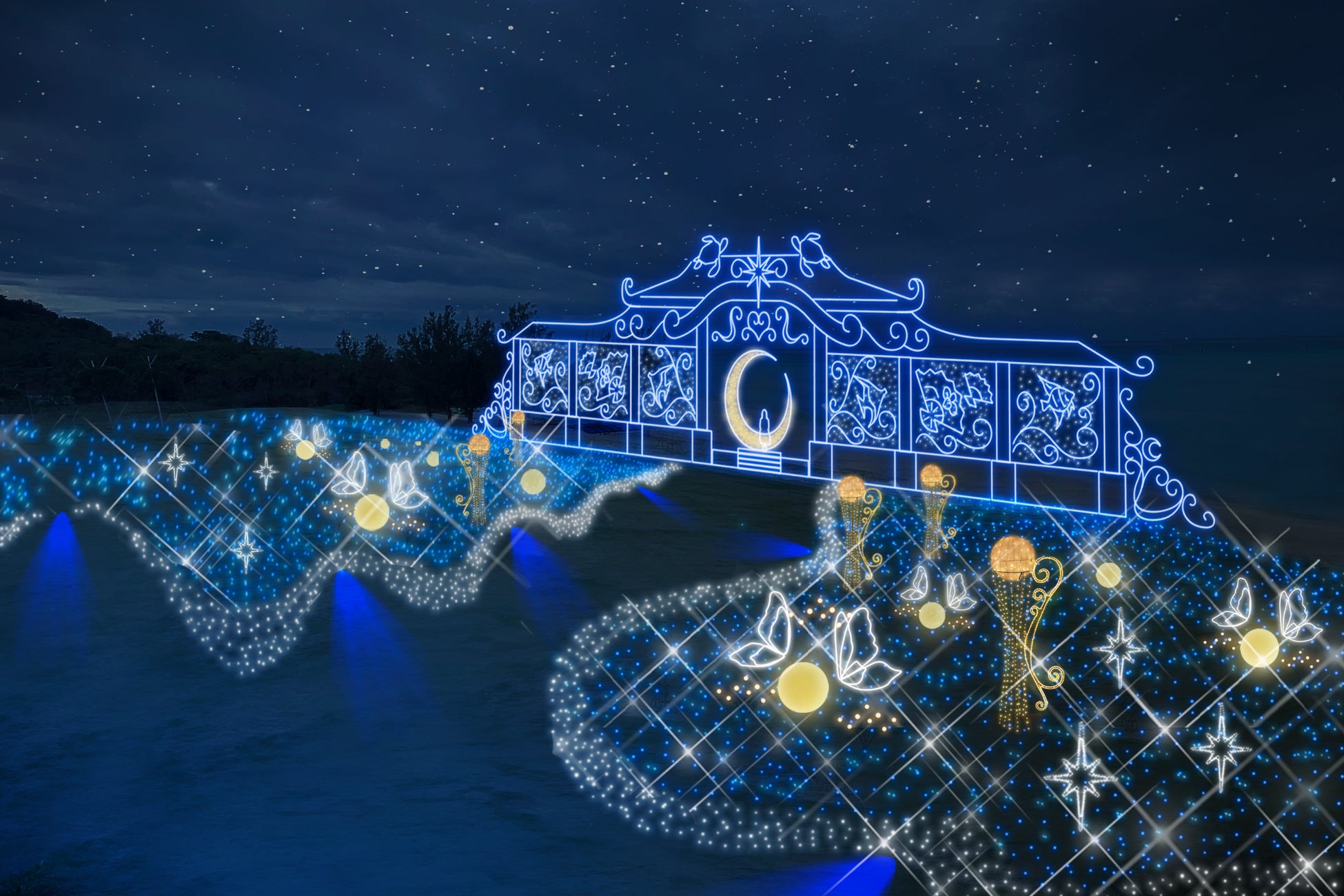 沖縄のラグジュアリーリゾートホテル「琉球ホテル&リゾート 名城ビーチ」に30万球の光が煌めく「月夜のワンダーイルミネーション」が誕生