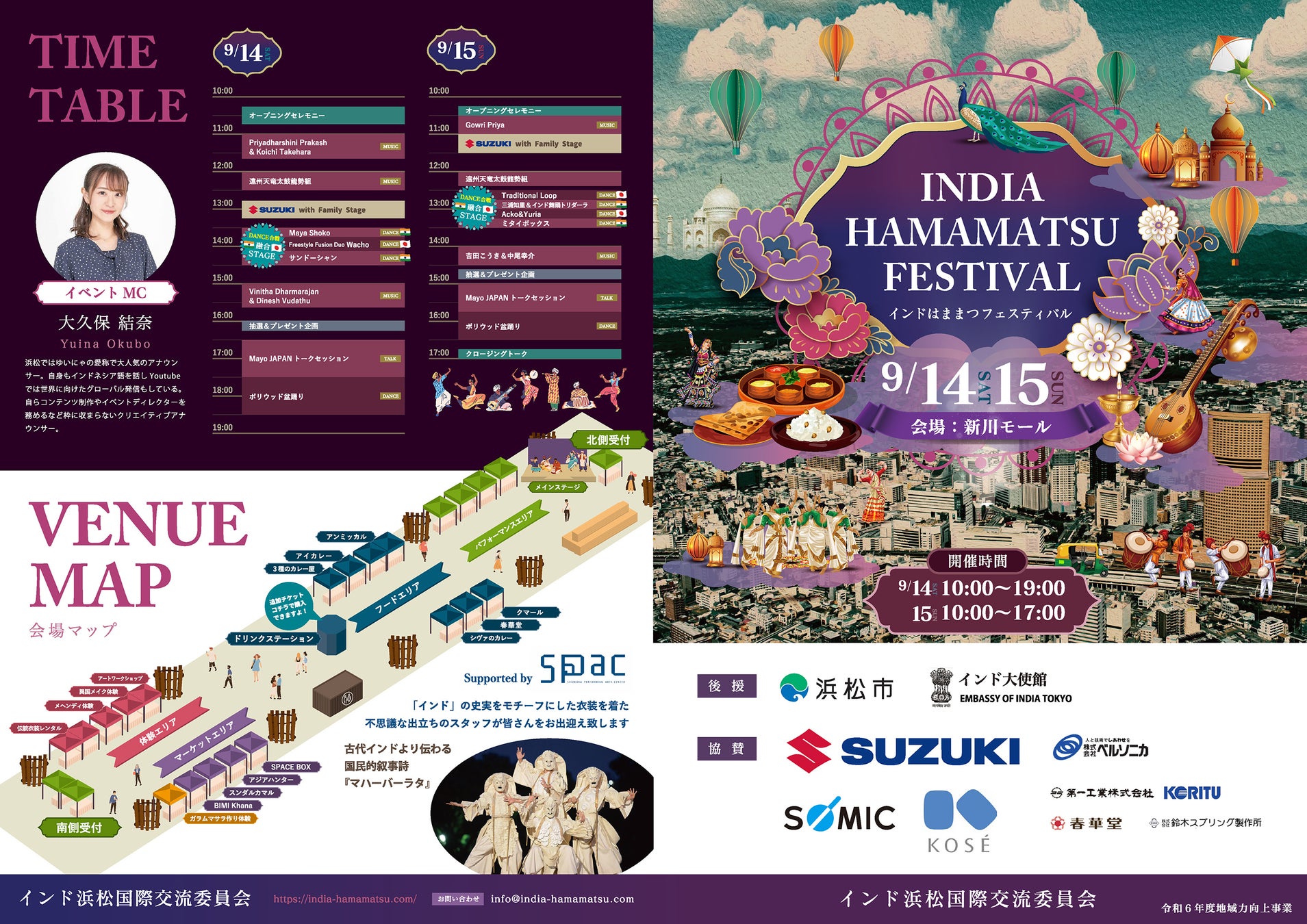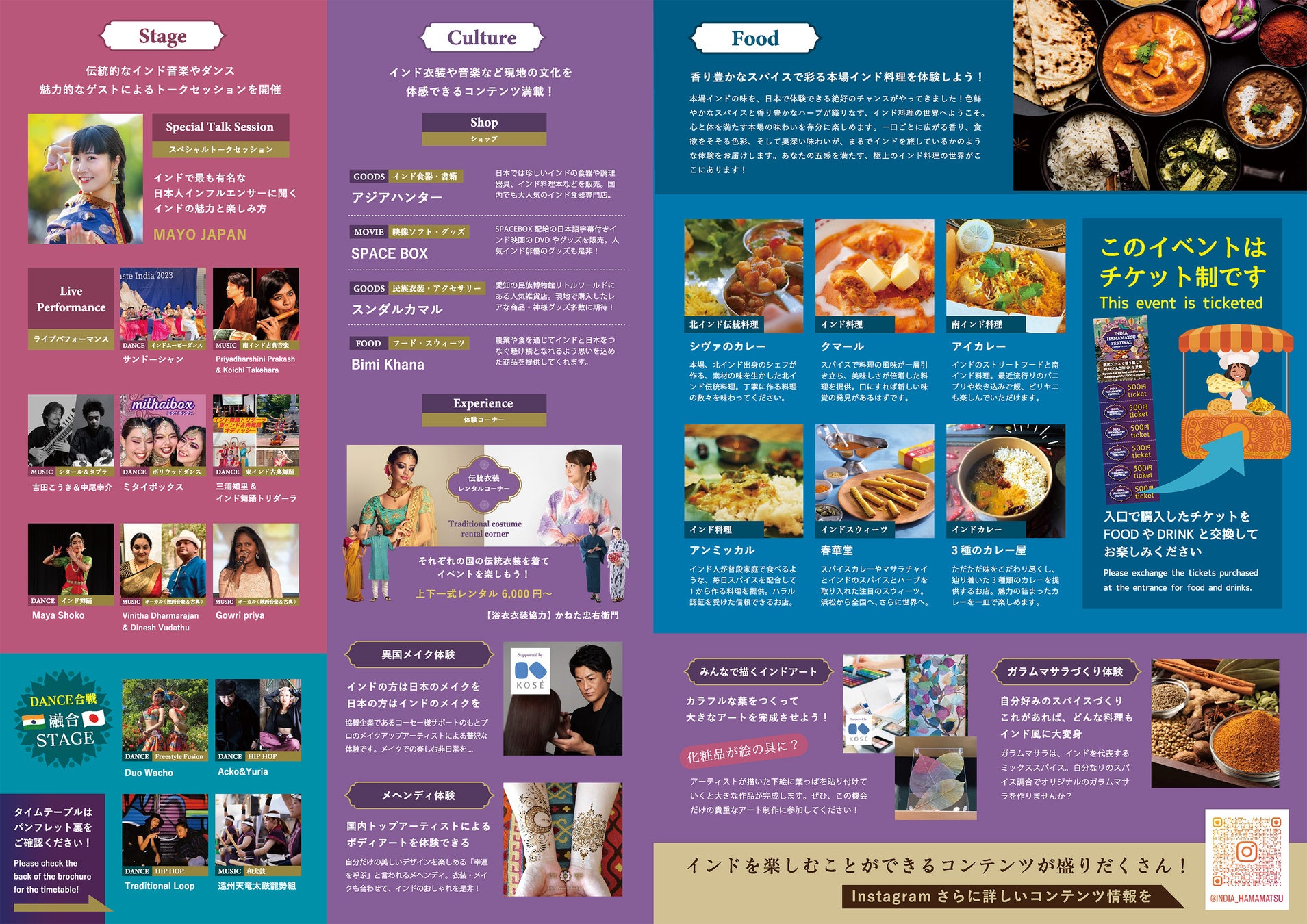 インドと浜松の国際交流に取り組むことを目的とし、両国の文化(食・ファッション・舞踊・音楽)を体験しながら、それぞれの国籍の人たちが楽しみ、交流が自然と生まれる演出や催しを実施することで、街中のにぎわいを創出し、多文化が共生したインクルーシブな浜松を目指し開催されます。