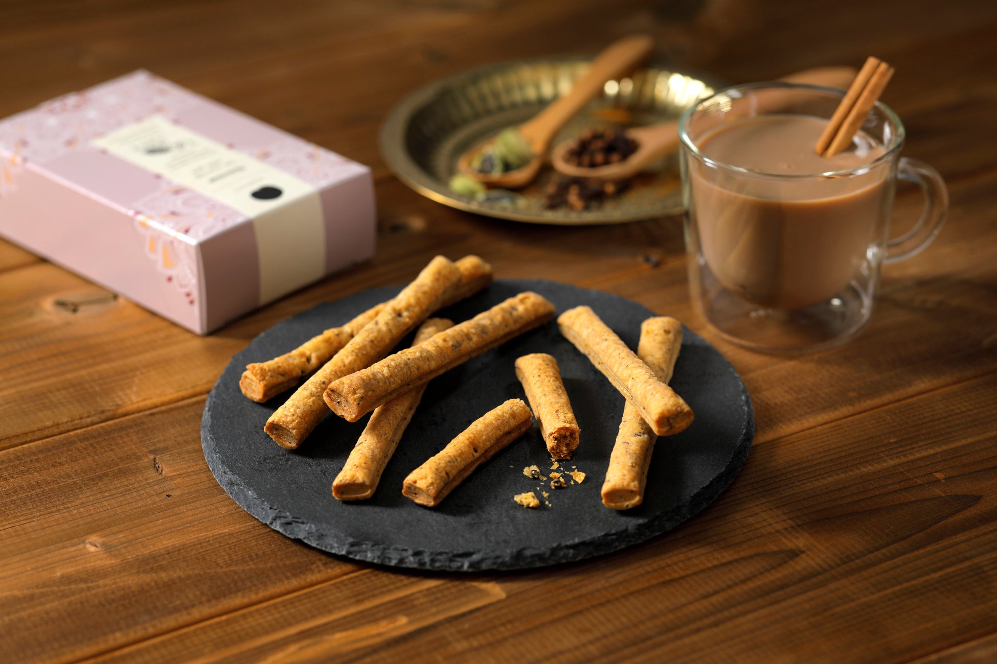 マサラチャイをイメージし、スパイスの香りを最大限に引き出したエキゾチックなスティックパイです。ベースの紅茶は、アールグレイ。そこへ、カルダモン、シナモン、クミン、ジンジャー、ブラックペッパーで刺激的で凛とした味わいに仕上げました。パッケージは織物の国インドの土地に根付いたペイズリー柄をモチーフに、ヨガの聖地であるインドをイメージしました。