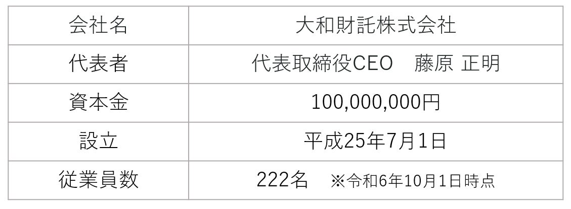 大和財託株式会社は、資産価値共創業です。資産価値を共に創る様々なサービスを駆使してお客様の人生に伴走しながら利益を生み出し、同じ志でつながるお取引先様と力を合わせて今までにない価値を開発・建設します。