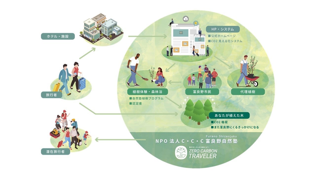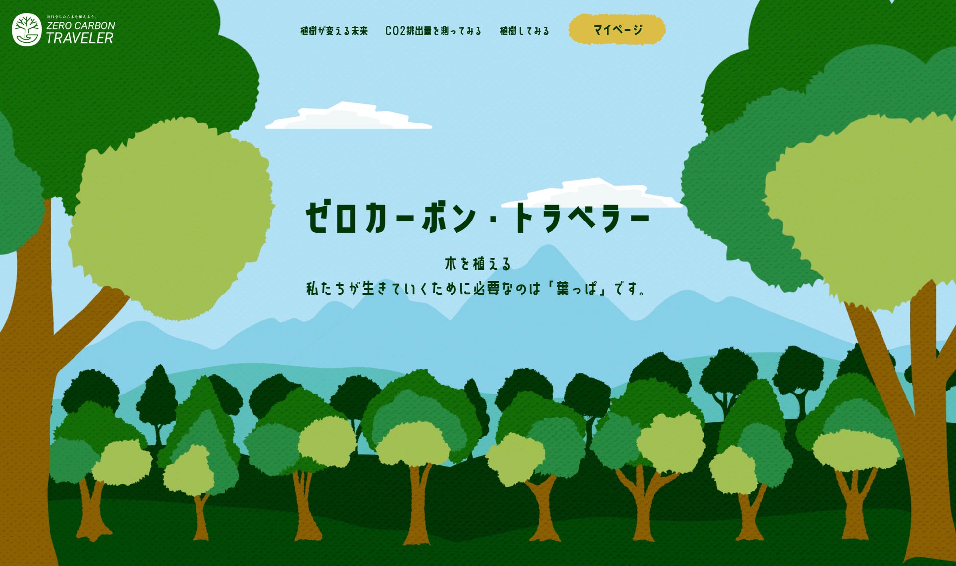この企画は、旅行で飛行機の移動、車の移動で発生したCO2をそのままにせず、『木を植える』ことでオフセットし『ゼロカーボン』でクリーンな旅行にしようという内容です。