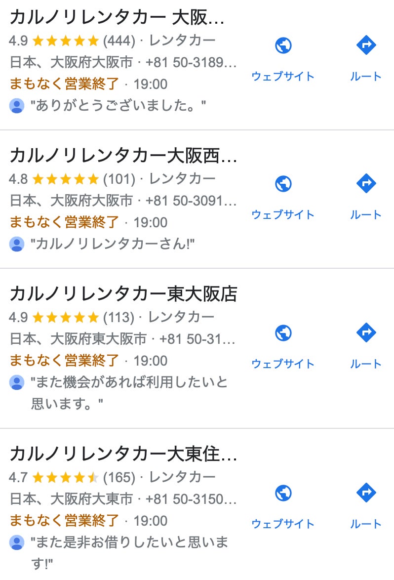 カルノリレンタカーは格安レンタカーですが『安かろう悪かろう』は徹底排除しています。格安な分、新車をレンタカーとして提供することは難しいですが、それ以外の『接客サービス』には日本一力を入れて取り組んでいます。その結果、Googleの口コミにおいて、お客さまから高評価な口コミをいただいています。