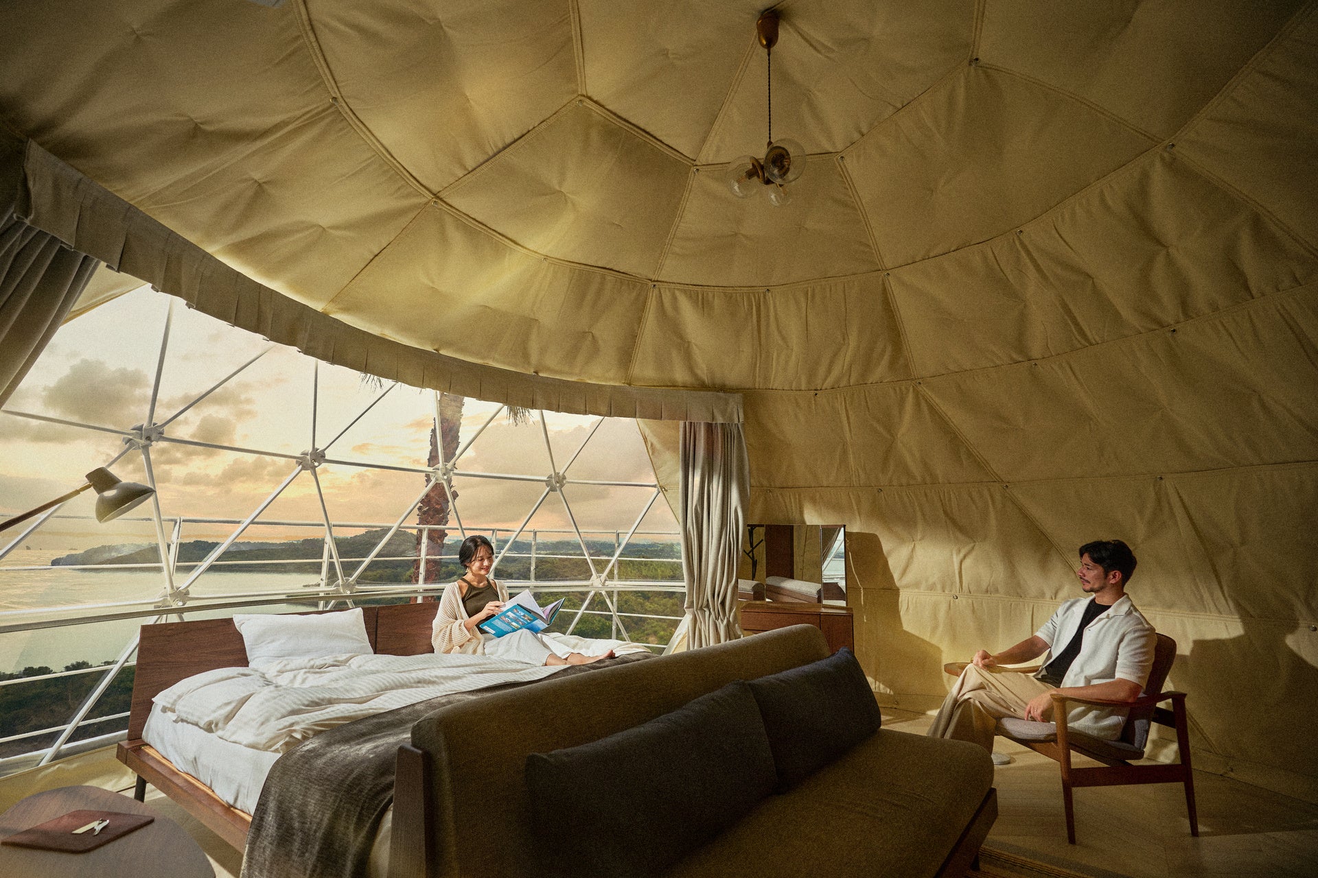 キャンピングトレーラーの最高峰「エアストリーム」と専用サウナなどの特別設備が揃うドームテント型スイート「ルーフトップスイート」からお好きな客室をお選びいただけます
