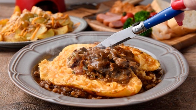 ぷるんと半熟に焼き上げたオムレツにすーっとナイフを投入すると、中からとろ~り卵が溢れ出す、アトラクション型のオムライスです!おいしい演出にも是非ご注目ください。
