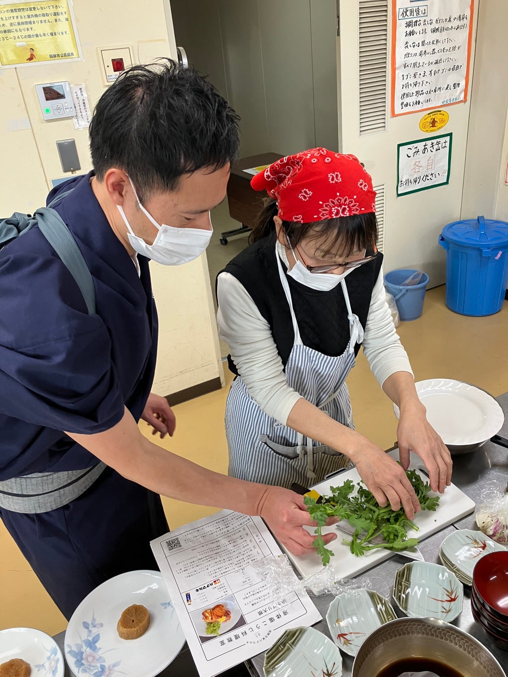 今回の「ハナマルキッチン in 飛騨市」では、工藤英良シェフに監修いただいた、焼きブリ大根、冬野菜の簡単麹漬け、酒粕汁の3つのメニューをご用意。飛騨市民にも馴染み深い冬のごちそうのひとつである「ブリ大根」では、奥飛騨山之村の天然フーズドライ食品として有名な寒干し大根とブリに、液体塩こうじを加える調理法を体験いただき、参加者からは「 いつも以上に美味しく仕上がった」といった声も聞かれました。