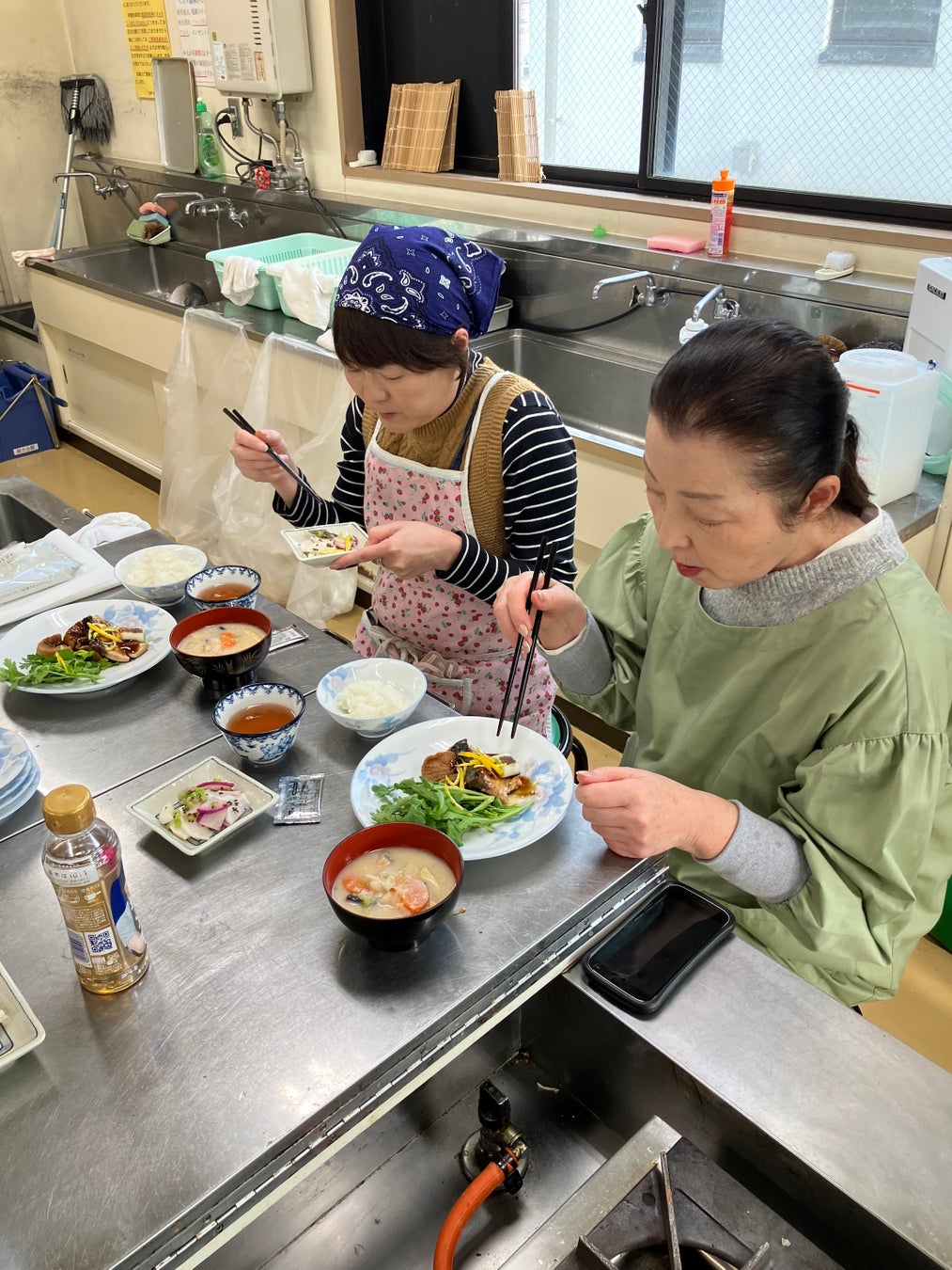 の方々は、工藤英良シェフから調理方法や液体塩こうじの使い方についての説明を受けながら、焼きブリ大根、冬野菜の簡単麹漬け、酒粕汁の3つのメニューを1時間程度で仕上げられました。出来上がっ
