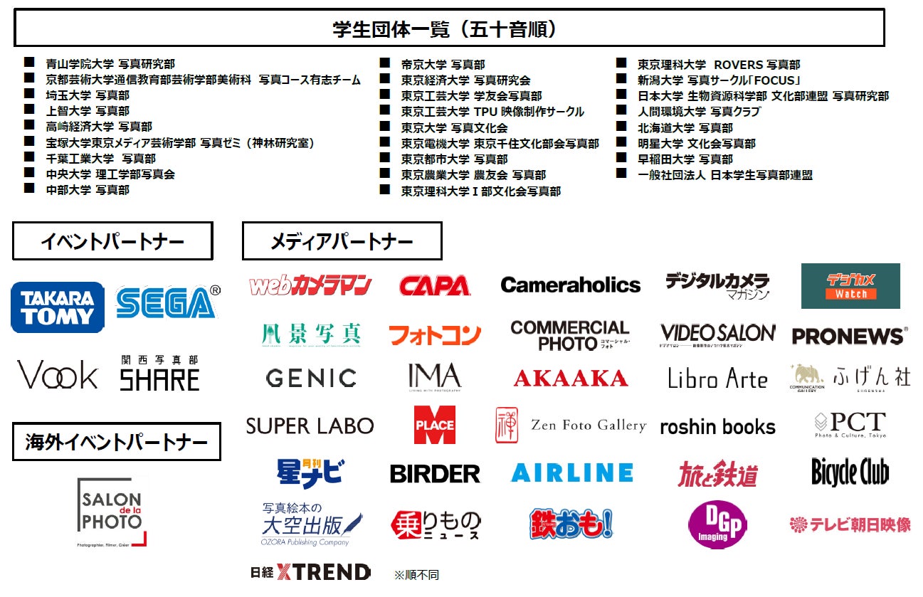 - 協 力: 公益社団法人応用物理学会/カメラ記者クラブ/東京写真記者協会/日本営業写真機材協会/一般社団法人日本オプトメカトロニクス協会/一般財団法人日本カメラ財団/一般社団法人日本光学会/公益社団法人日本広告写真家協会/一般社団法人 日本写真映像用品工業会/公益社団法人日本写真家協会/一般社団法人日本写真学会/協同組合日本写真館協会/公益社団法人日本写真協会/一般社団法人日本写真文化協会/一般社団法人日本電子回路工業会/日本フォトイメージング協会/一般社団法人日本望遠鏡工業会/パシフィコ横浜/公益財団法人 横浜市観光協会(50音順)