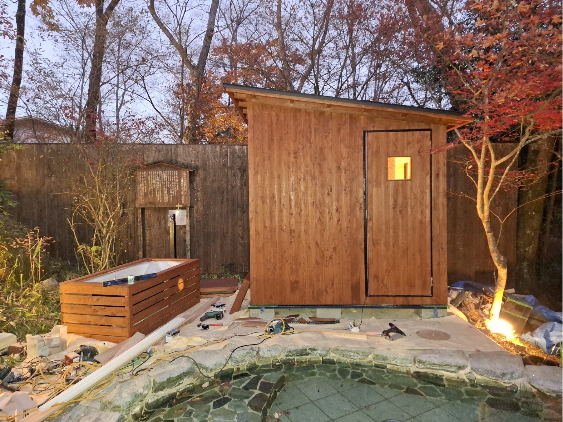 男性露天風呂には、『 Ruska sauna 』が新登場!(写真は建築中画像です)