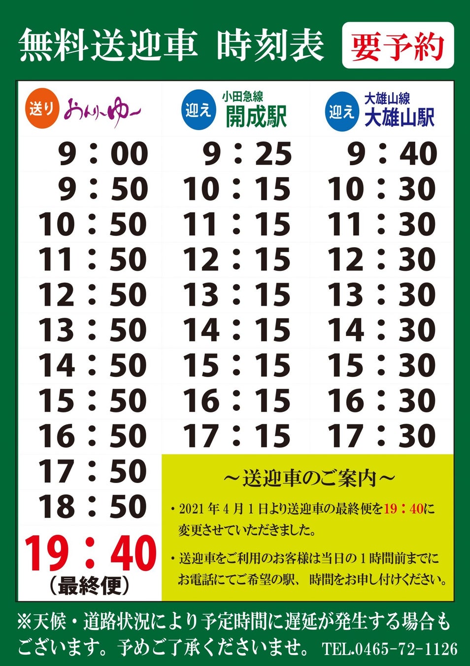 始発便の送迎車のみ前日のご連絡をお願いいたします。