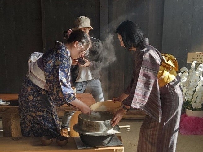 モニターツアーでは、かまどのふたを開けて、湯気の中から粒の立ったご飯が見えてきた瞬間、参加者からどよめきがわきました。