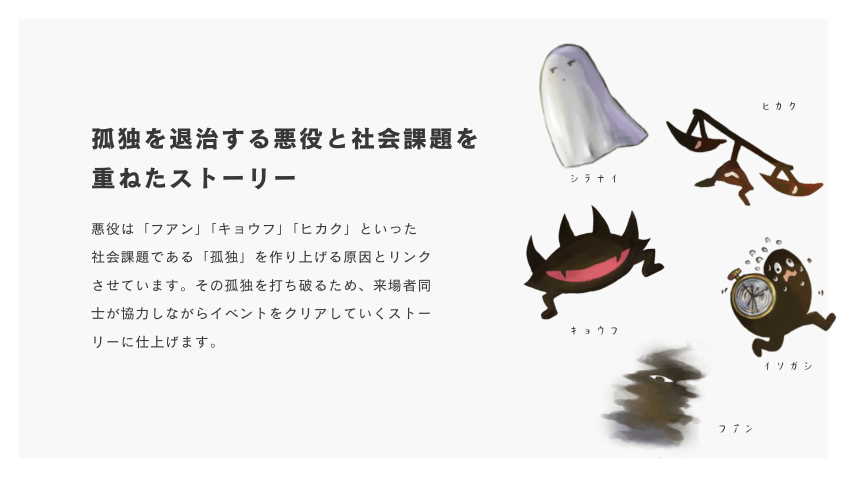 さらに、本イベントでは社会課題である「孤独感」の解消を目指し、「パーティーを組む」という仕掛けを通じて、来場者同士の協力や自然なコミュニケーションを促進します。
