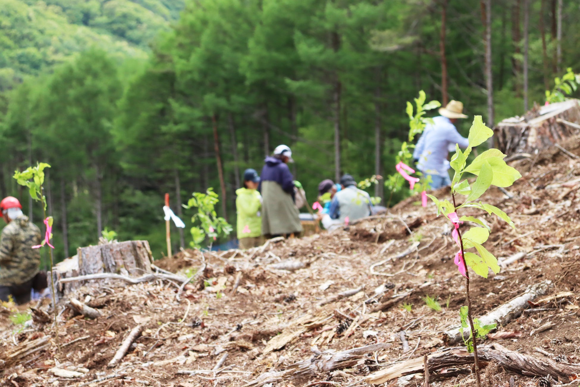 プレゼントツリーが生まれたのは、そのような大面積皆伐後の植栽放棄地が社会問題として深刻化し、かつ日本の木材自給率が史上最低レベルにあった2000年代初頭。多くの人々の興味と足を森に戻し、はげ地や被災林、開発跡地を元の森に戻すため、2005年にスタートしました。「贈り物に樹を植えよう」と呼びかけて、都市部の人たちが、全国の樹を植えるべき場所に、自分や大切な人のために地元植生の広葉樹を植えて、地元と共にその後10年間育てていくというプロジェクトです。プレゼントツリーの「プレゼント」 には、大切な人へのプレゼント、と言う意味と、その地域の森へのプレゼント、延いては地球の未来へのプレゼント、という意味が込められています。