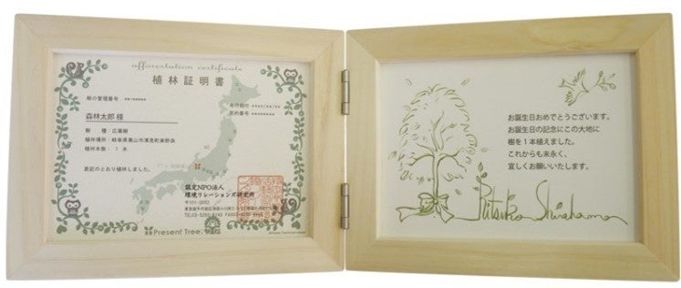 里親(樹を贈られた人)には、確かに樹が植えられた証である「植樹証明書」が届きます。樹には1本1本に管理番号が振られ、森林組合などの林業のプロにより森になるまで大切に保育管理されます。この証明書が手元にあることによって、自身が里親になった樹のある森との縁が可視化されます。
