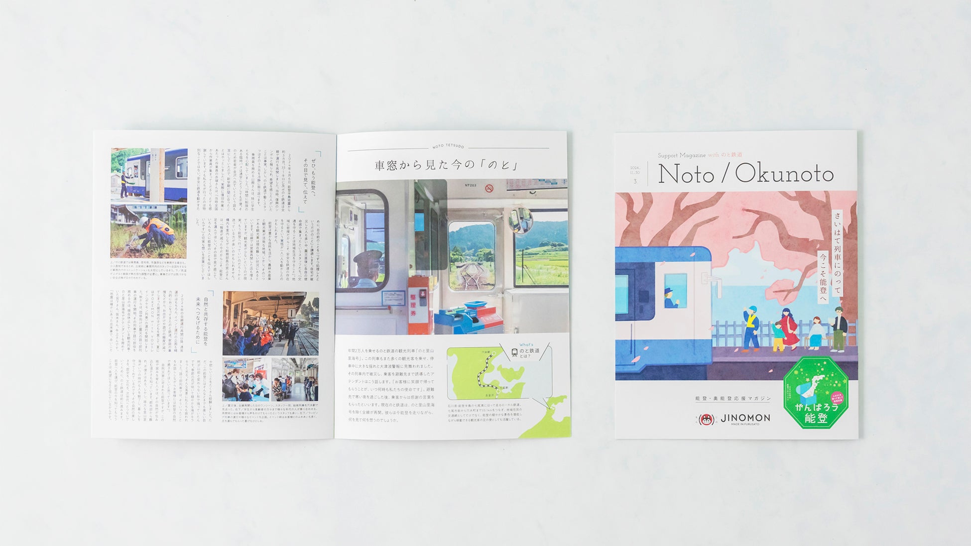 能登・奥能登を愛し、地域に根差して活動する人たちを紹介する「がんばろう能登応援マガジン」、『のと鉄道』を通じて見える能登の「今」についてお伝えする「がんばろう能登応援マガジン(のと鉄道特集号)」の2冊をお届け。