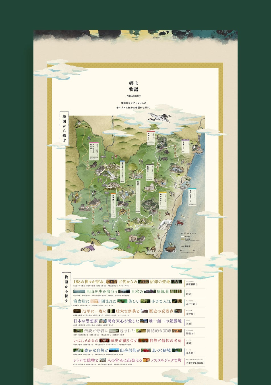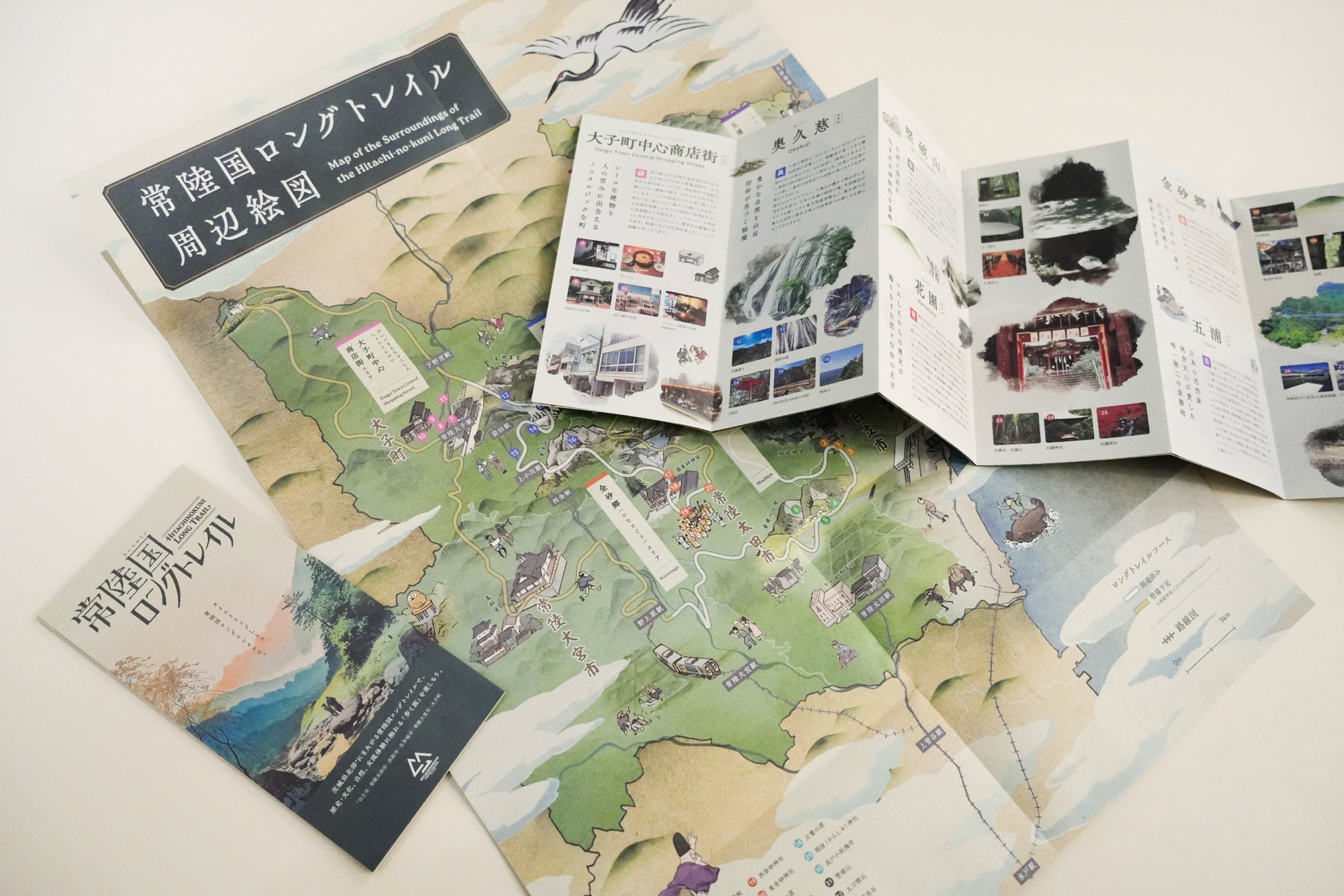 特設サイトと連動した常陸国ロングトレイルの周辺マップでは、歴史を感じるイラストとともに、トレイルの世界観やエリアのストーリーを一枚でご覧いただくことが可能です。マップは4つの言語(日本語、英語、フランス語、繁体字)で制作され、特設サイトでの公開のほか、県内外で配布を行っております。