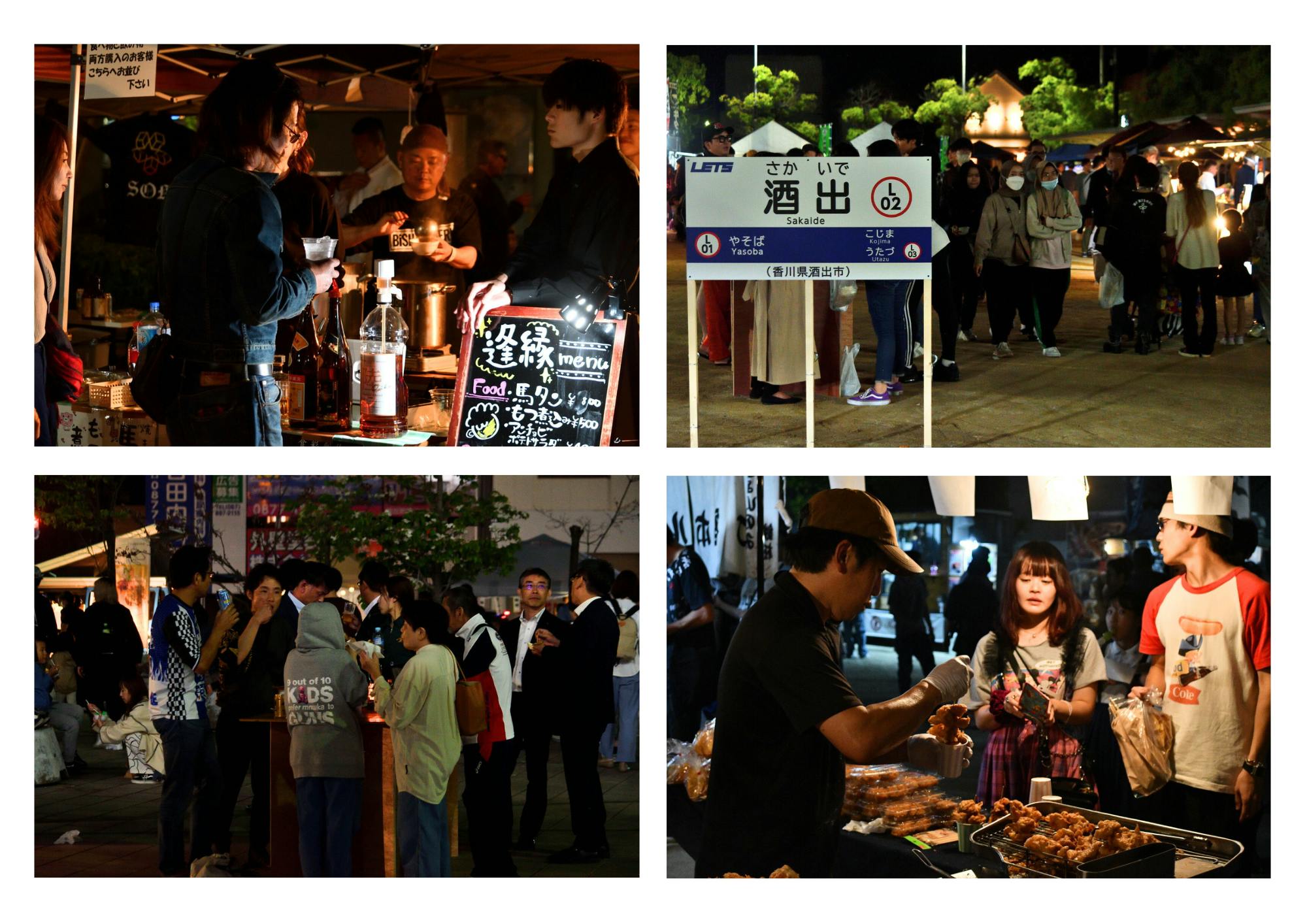 「LET’S酒出駅」は、週末の夜、人気の居酒屋や飲食店が坂出駅前に集結し、美味しいお酒と料理が楽しめる立ち飲みイベントです。