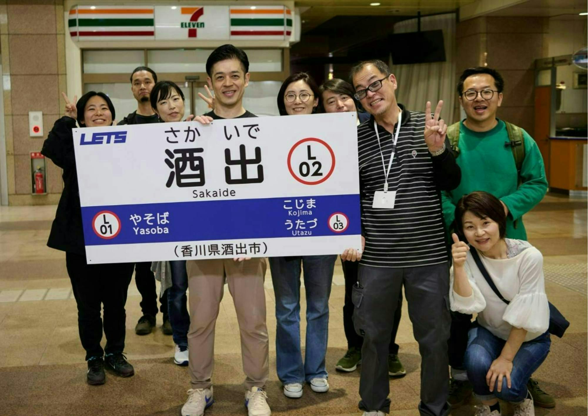 お揃いのTシャツを着て、坂出駅前で乾杯しましょう!
