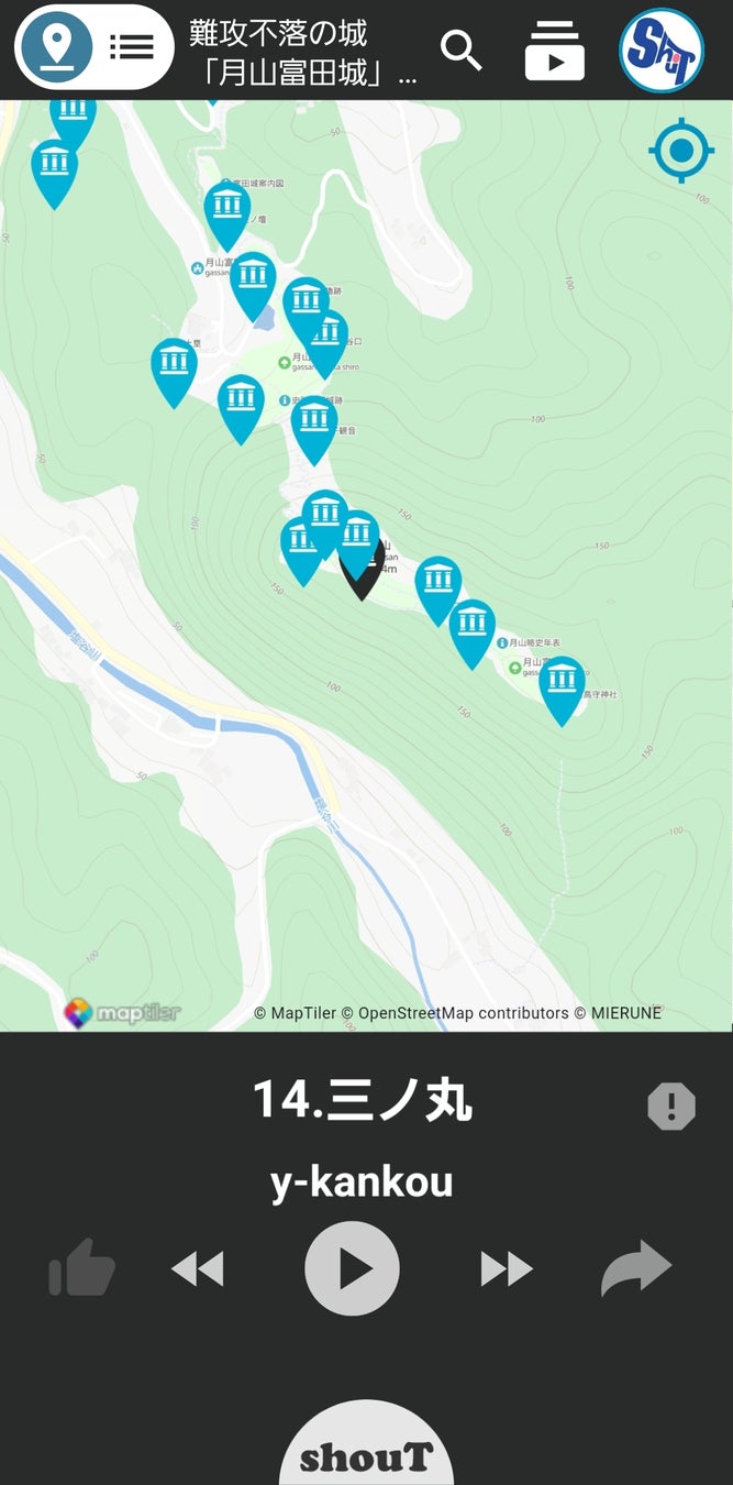 - 月山富田城に足を運び、現地で音声ガイドを聴く