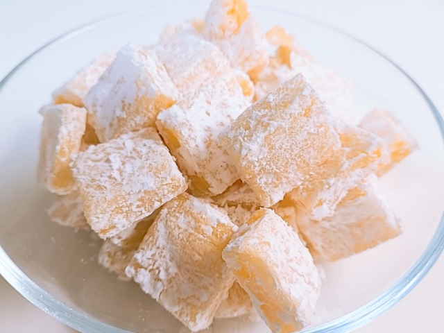 バター餅は、秋田県の郷土菓子です。水に一晩浸したもち米を使っており、餅の柔らかな食感が人気の秘密。
