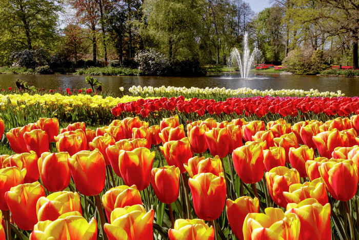 アムステルダム近郊のキューケンホフ公園は、春に咲き誇るチューリップや色とりどりの花々が魅力。広大な敷地内を散策しながら、写真撮影やピクニックも楽しめます。