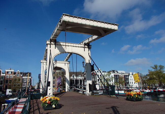 アムステルダムのシンボルのひとつ、マヘレの跳ね橋は運河に架かる歴史ある橋です。散策しながら旧市街へ戻る途中、運河沿いの街並みやカフェ、ショップを楽しめます。