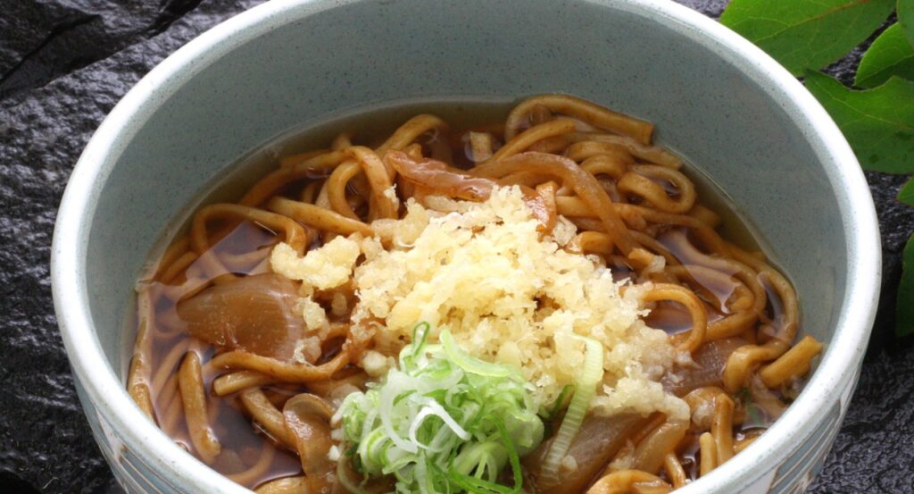 黒石つゆやきそばは、青森県黒石市発祥のご当地グルメです。甘辛いソースで味付けした太めの麺の焼きそばに、鶏ガラやんぼ氏のスープをかけて食べる独特のスタイルが特徴です。