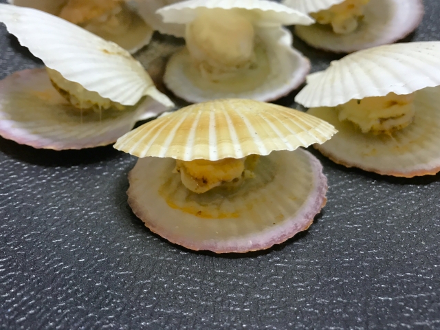 ホタテは通年獲れますが、特に夏は身がふっくらとして旨みが強い時期です。焼きホタテや浜焼きとして人気です。