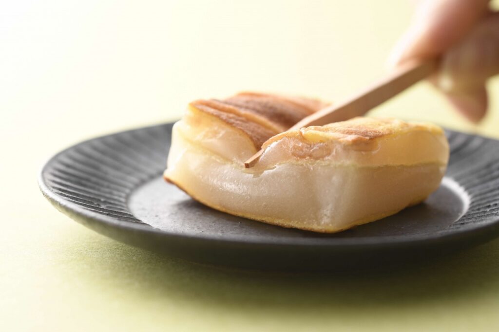 こたつで切り分けて食べる家庭の味として親しまれ、保存料を使わないシンプルな製法も福井らしさの一つです。素朴ながら記憶に残る甘味として、地元では欠かせない存在です。
