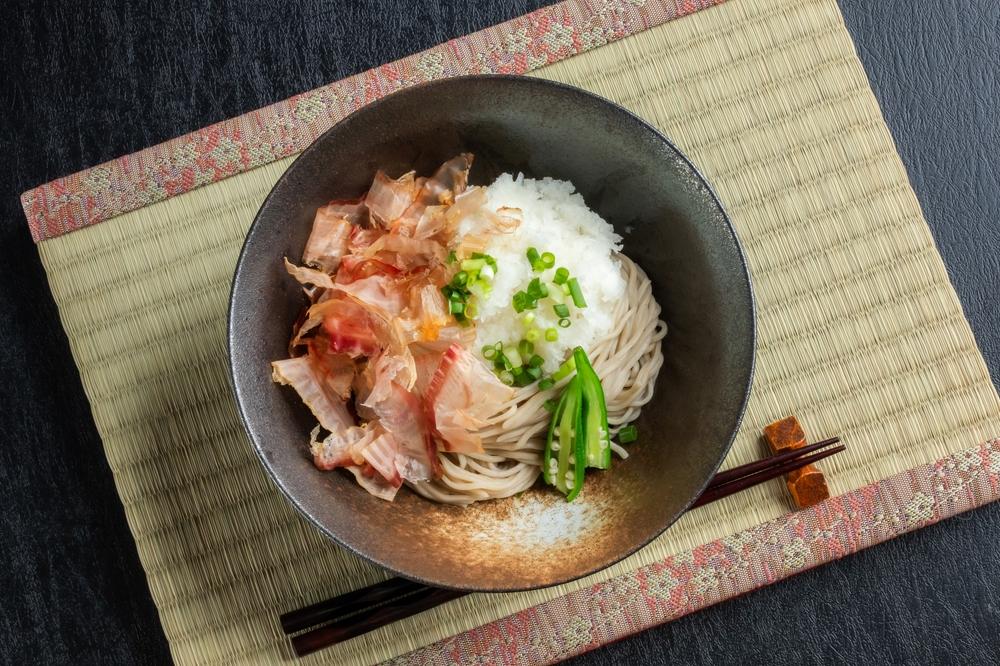 越前おろしそばは、冷たいそばにたっぷりの大根おろしと削り節をのせ、濃いめのだしをかけて食べる福井の定番料理です
