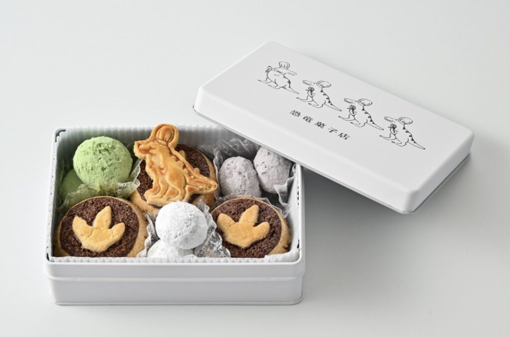 福井県産の米粉や天然塩を使った三層サブレ「恐竜サブレ」など、恐竜テーマのオリジナルスイーツがそろいます。