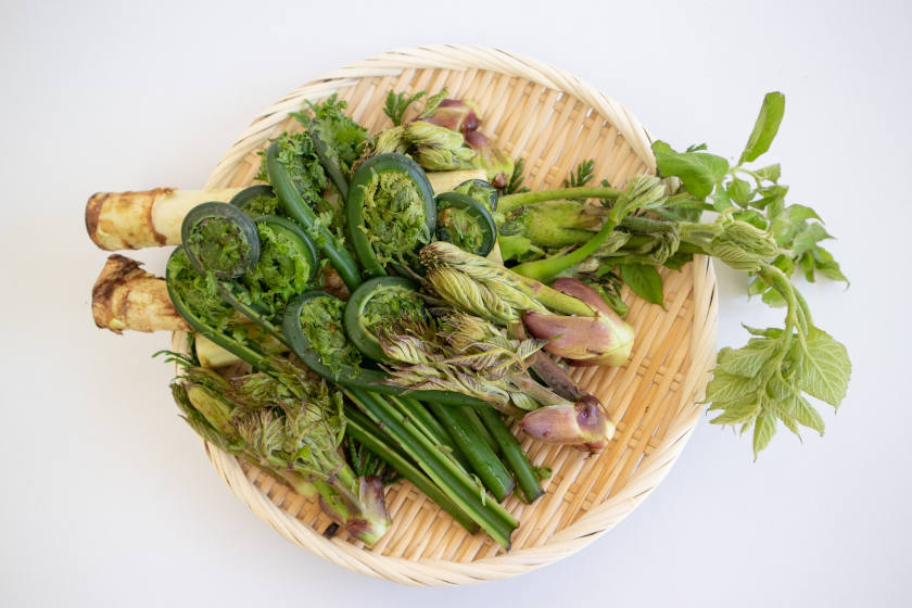 春は山里で芽吹く山菜や、若狭湾で獲れる魚介が旬を迎えます山菜はほろ苦い風味が特徴で天ぷらや煮物に最適です。