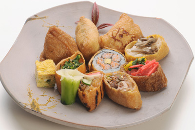 笠間いなり寿司は、茨城県笠間市の名物グルメです。油揚げの中に酢飯のほか、くるみやそば、舞茸など、地元の食材を活かした変わり種を詰める多彩ないなり寿司が特徴です。