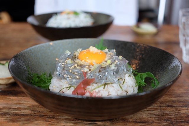 獲れたてのしらすをそのまま丼に盛り、醤油やポン酢でシンプルに味わうのが特徴です。しらすの甘みと海の香りが口いっぱいに広がり、まさに旬の味覚を堪能できます。