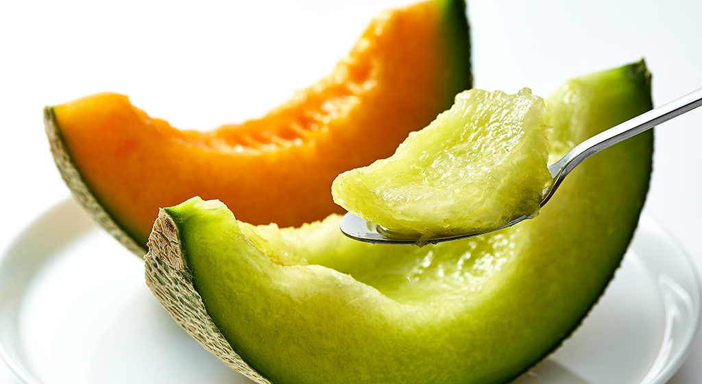 夏の主役は鉾田市のメロンです。果汁たっぷりで芳香が高く、まさに食べる香水と言えます。