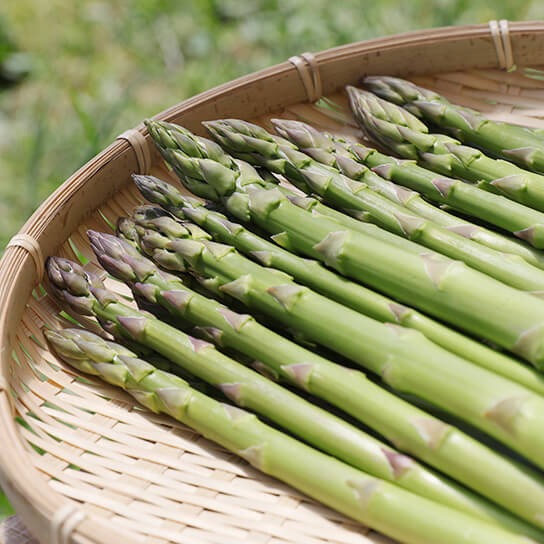 柔らかく甘みのあるアスパラはシンプルなソテーが最適です。いちご狩りも人気で、県南を中心に芳醇な香りと甘酸っぱさを楽しめます。