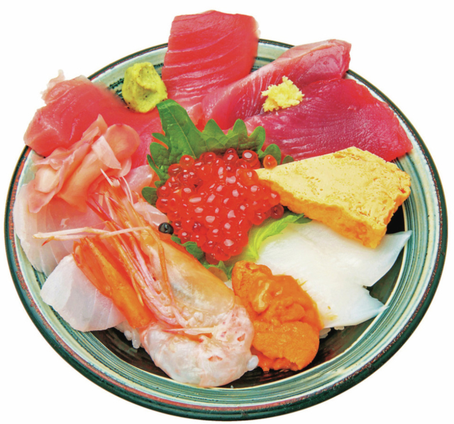 茨城県ひたちなか市の那珂湊おさかな市場の名産品の海鮮丼は、漁港から直送される鮮魚をふんだんに盛り付けた豪快な一品です。