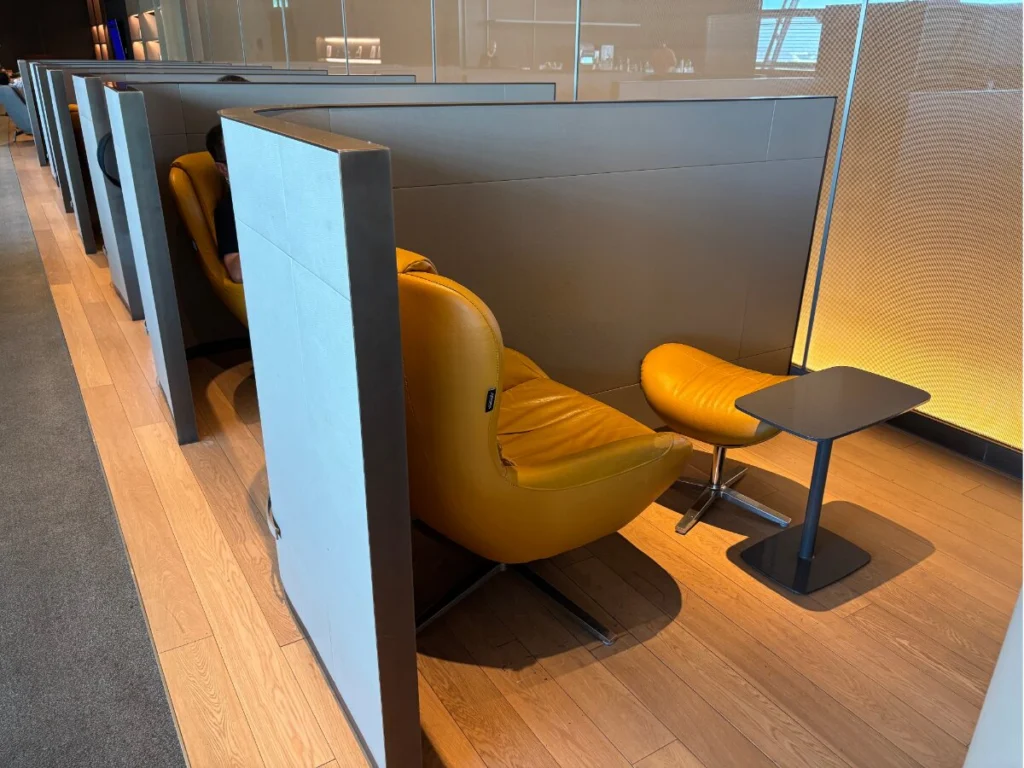 アクセスは西側の免税店エリアからすぐで、深夜や早朝のトランジット時にも重宝します。PC作業スペースもあり、静かな環境でビジネス作業を済ませたい方にも適した環境が整っています。