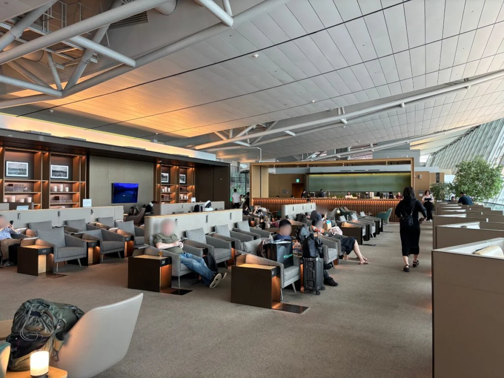 シャワー施設やマッサージチェアなど、長距離フライト前に体をリフレッシュできる設備が充実しています。食事は軽食中心ですが、ラグジュアリーな空間で静かに過ごしたい方に最適です。