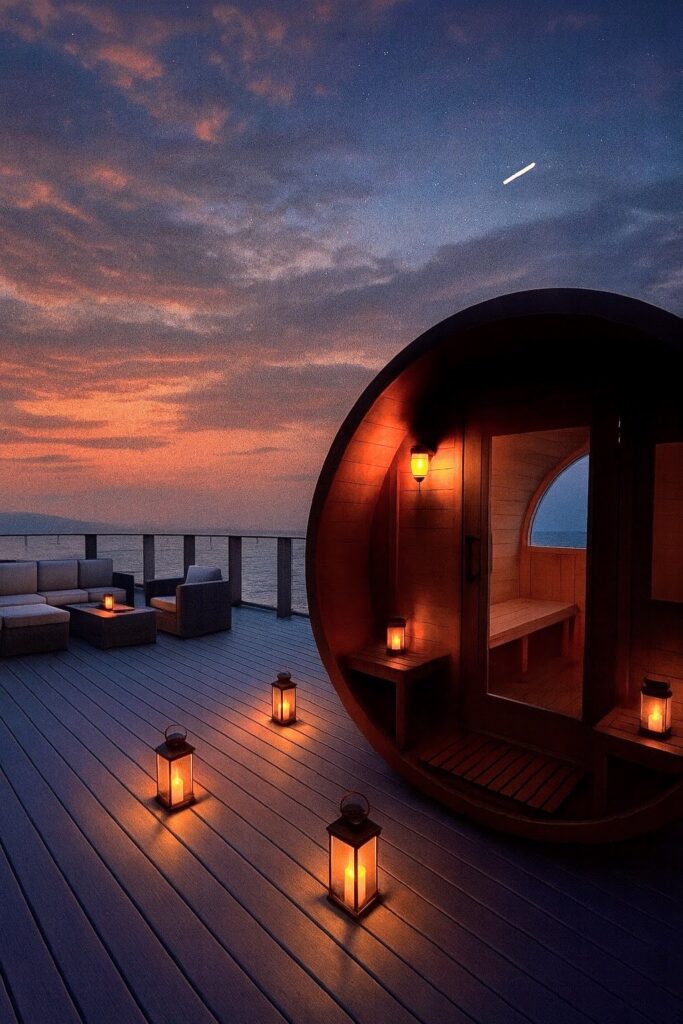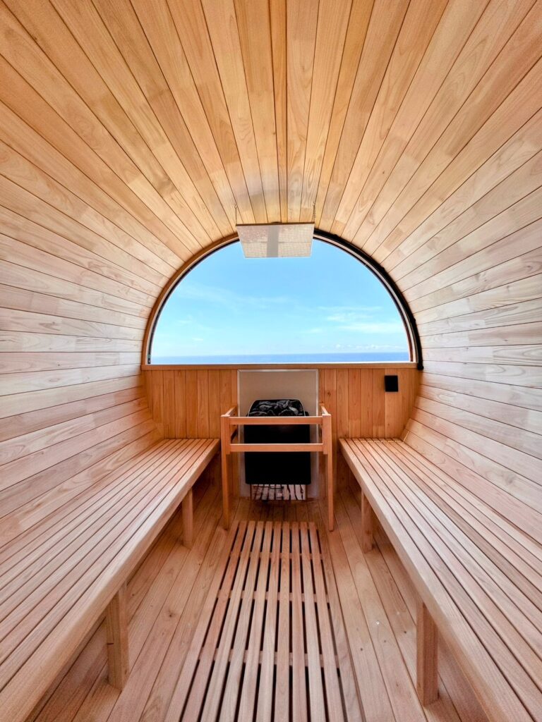バレルサウナで身体を芯から温めたあと、冷たい海風を感じながらの“冬の外気浴”は、この時期だけの至福の体験です。