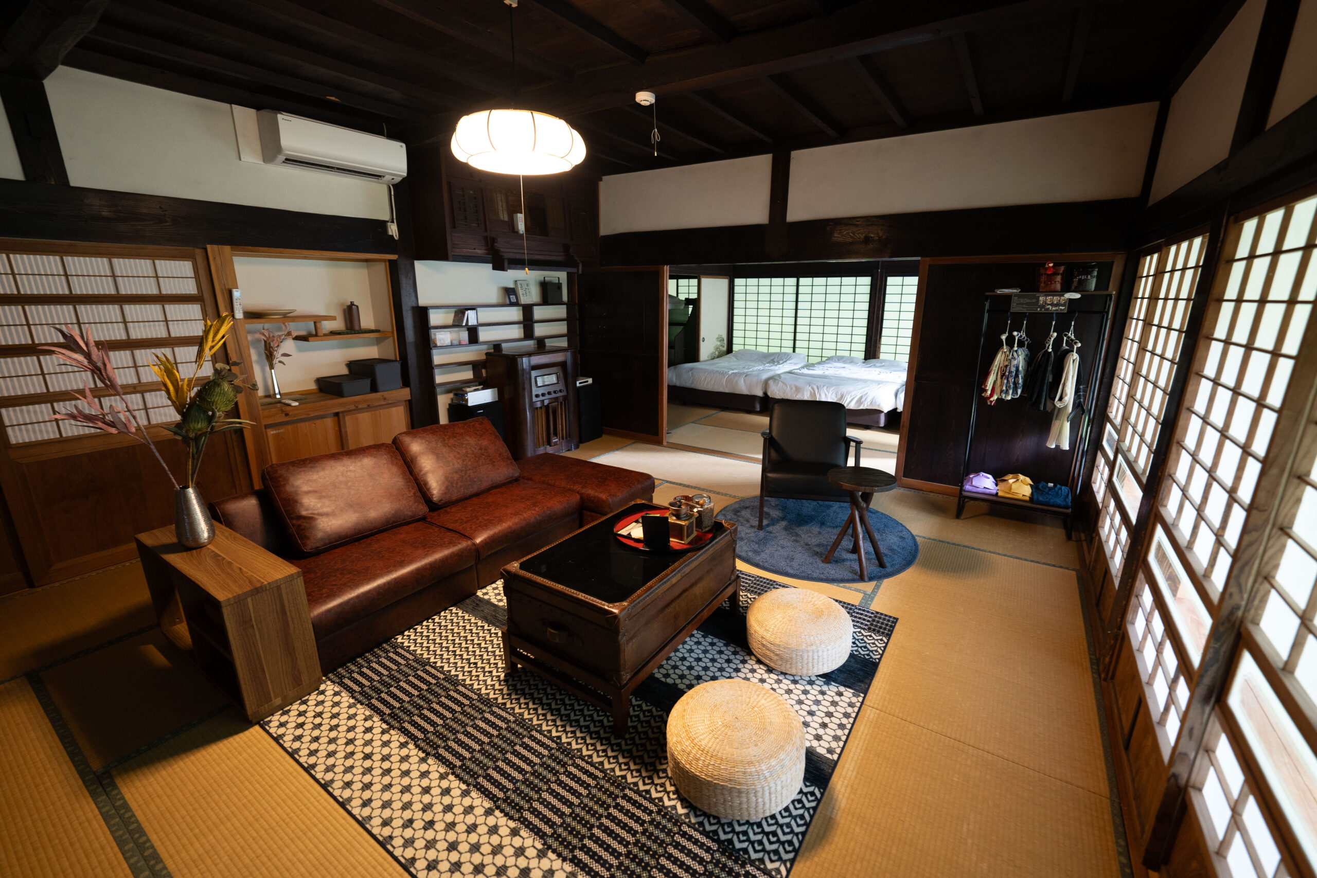 香取はちさんろくは、築150年の伝統家屋を改装して作られた、一棟貸しのプライベート施設です。リノベーションされた邸内では、囲炉裏を囲みながら、古いものを長く愛する暮らしを体験できます。