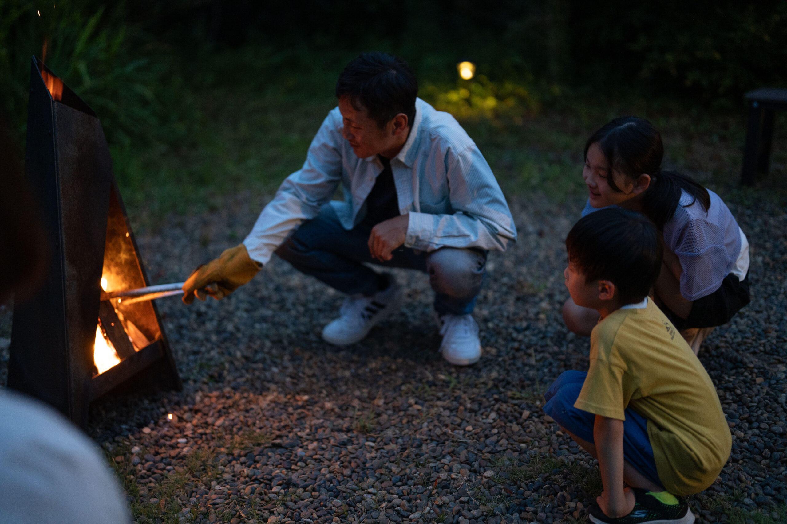 夜は広い庭で焚き火を楽しみながら、大切な人とのひとときを満喫できます。