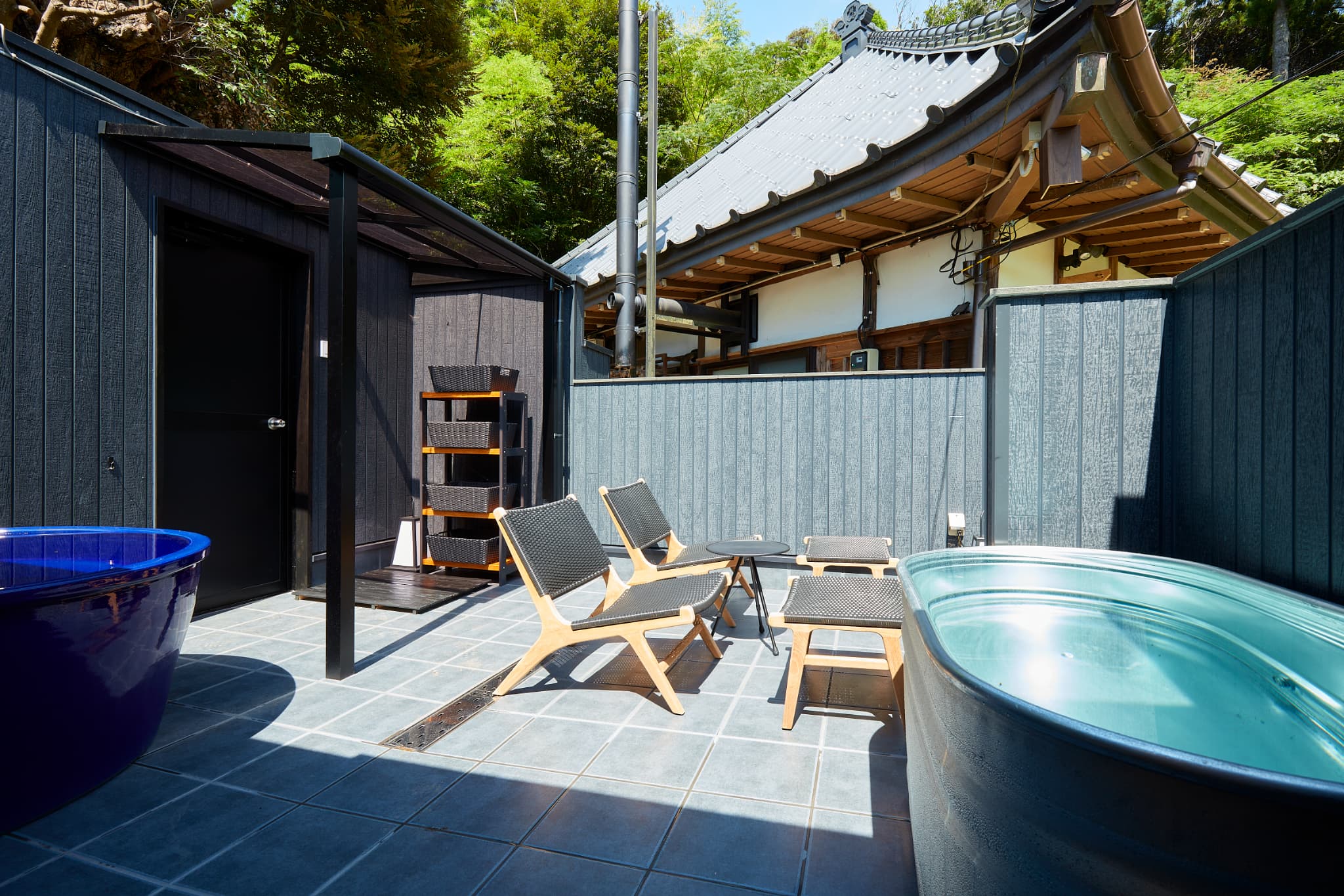 敷地内にはゆったりとくつろげる露天風呂や水風呂、サウナもあり、癒しの時間を過ごすのに最適。地下から汲み上げた天然水の露天風呂に浸かるひとときは格別です。