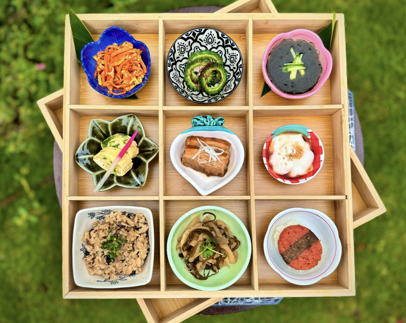 人気の「沖縄食体験」では、ゴーヤー、島豆腐、海藻、近海魚の惣菜など、沖縄ならではの料理を9種類の小鉢で提供しています。地元の食材を丁寧に使い、朝から沖縄の文化と風味をまるごと楽しめます。