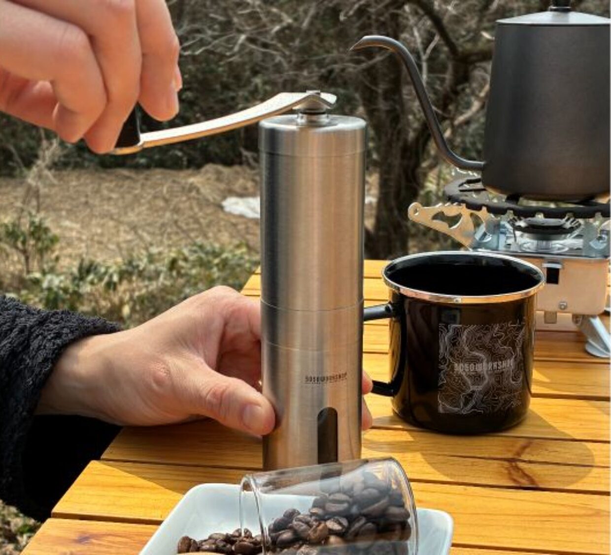 コーヒーも、冷泉のやわらかな水で抽出することで、まろやかな味わいに仕上がり、自然の中でゆっくりと味わうのにぴったりな一杯です。