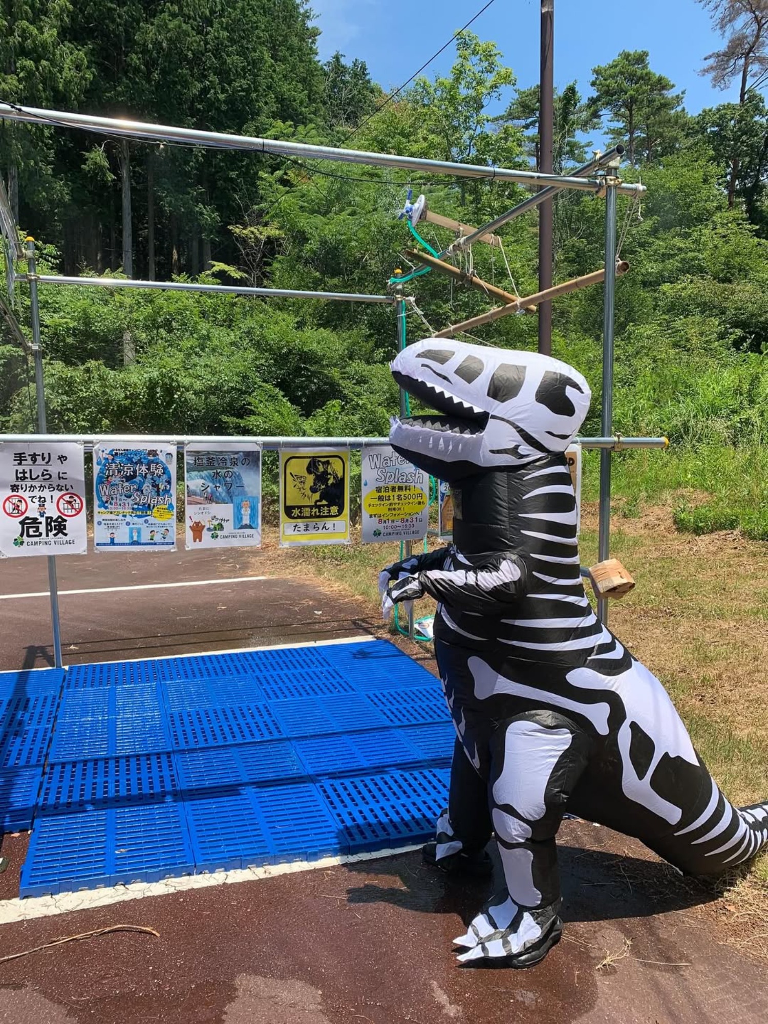 キャンプ場の一番奥、アスレチックエリアの横には、塩釜の冷泉を活用したミスト・スプラッシュ・ししおどしが設置され、夏ならではの遊び場として大好評。宿泊者はアスレチックやウォータースプラッシュを無料でご利用いただけます。