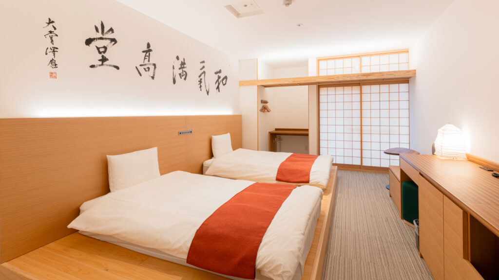 客室はダブルやツインを中心に最大4名まで利用可能で、家族旅行やビジネスどちらでも利用しやすいでしょう。朝食は和を基調としたレストランを楽しめます。