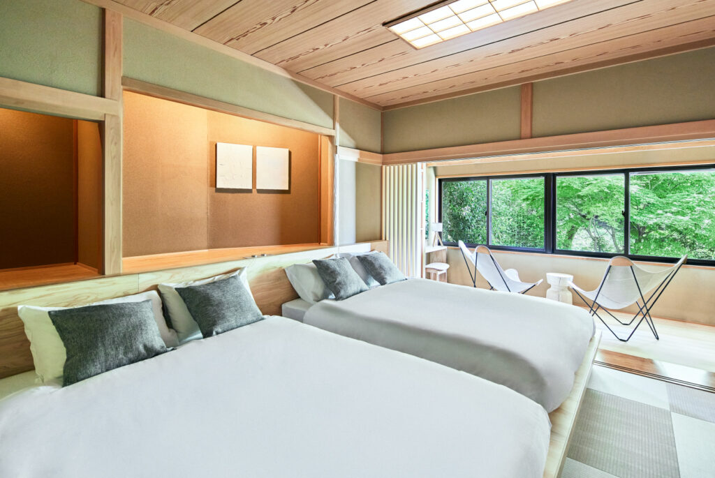 和風とモダンが融合した内装で、非日常を楽しめる特別な滞在が可能。宿泊料金は1泊2名利用で約176,000円〜とかなりのお値段になります。