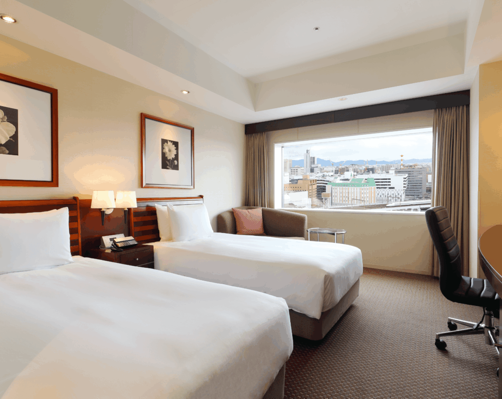 ANAクラウンプラザホテル岡山は、駅近くにありながら、ワンランク上の洗練された滞在を望めるホテルです。客室は広めで、全室大きな窓から岡山市街や夜景を望めます。
