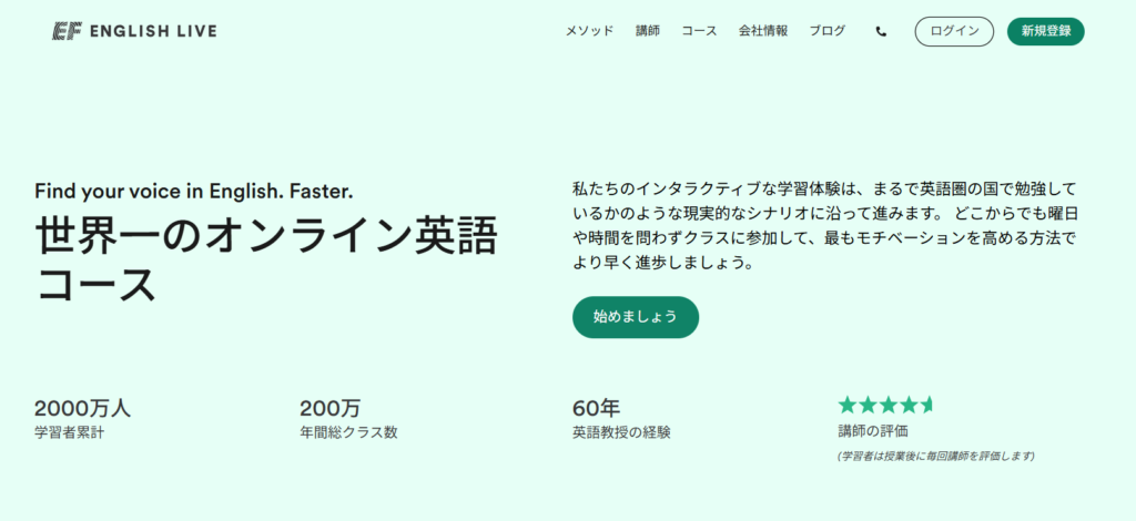 EF English Liveは、世界的な語学教育機関 EF Education First が提供するオンライン英会話サービスです