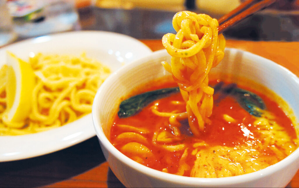 麺にはモチモチの生パスタが使われることが多く、具材には鶏肉や野菜がたっぷり入ります。また、仕上げに粉チーズを添える店も多く、コクのある味わいが楽しめます。見た目も楽しく、地元で親しまれる一品です。